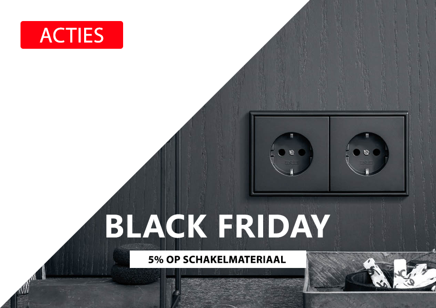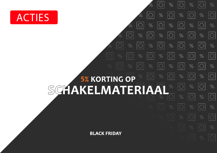 Black Friday houden we dit jaar op 2 dagen, donderdag en vrijdag 23 en 24 november. Bestel je schakelmateriaal met korting.