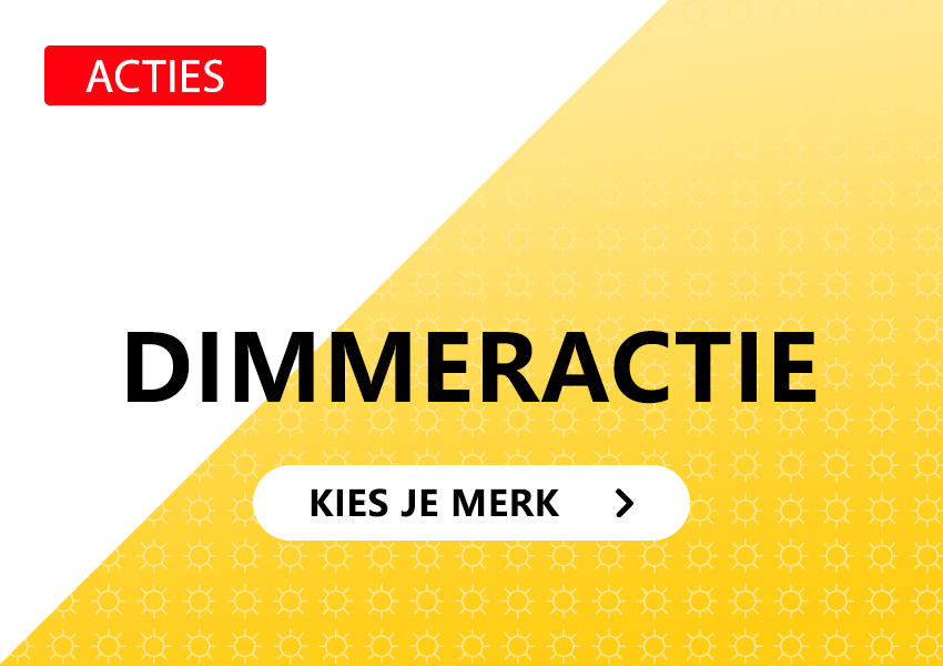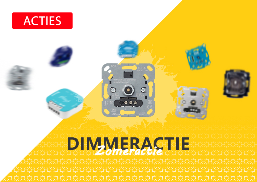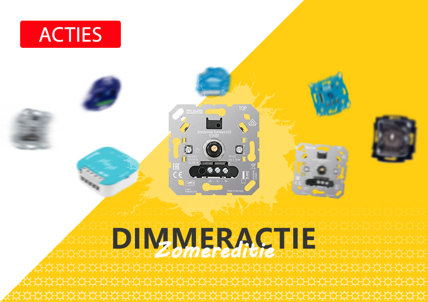 In deze zomeractie bestel je geselecteerde dimmers met korting. Klik op de afbeelding voor de DIMMERACTIE. Actie is geldig t/m 31.08.2022.