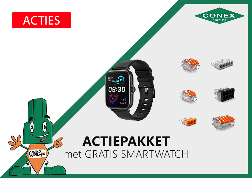 Conex heeft een actiepakket samengesteld met daarin een GRATIS smartwatch. Klik op de afbeelding en bekijk de actie. OP=OP